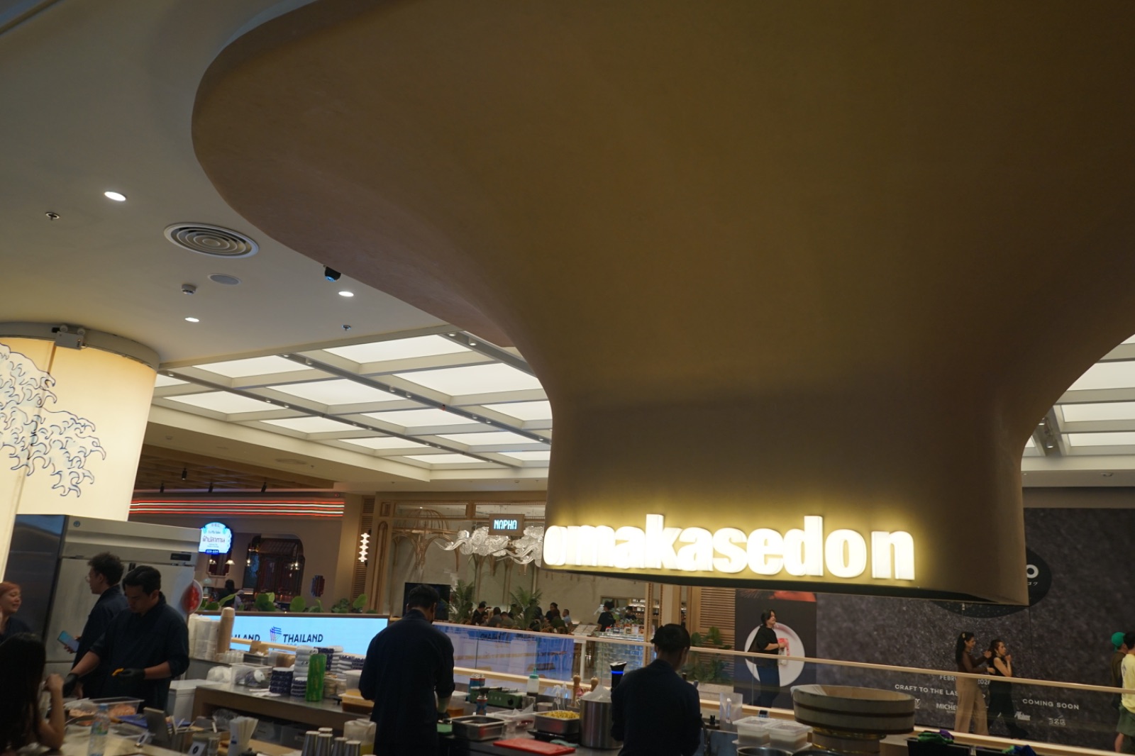 ร้านอาหารในห้างสรรพสินค้า ที่สามารถจอดรถเข็นในพื้นที่นอกร้าน บริเวณที่ติดกับที่นั่งภายในร้าน